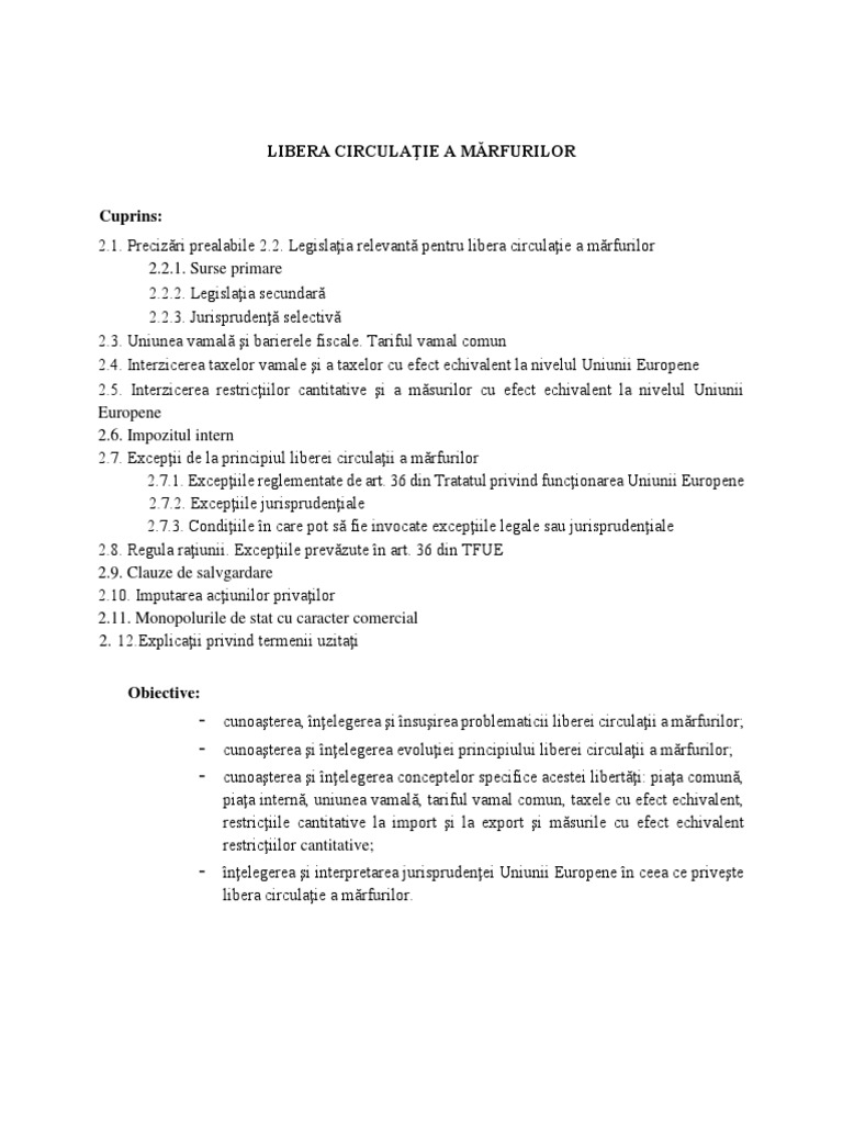 vizitati articolul complet aici : https://ro.scribd.com/document/56762746/Libera-Circulatie-a-Marfurilor Libera circulaţie a mărfurilor principiile liberei circulaţii a mărfurilor: Doc libera circulatie a marfurilor si politici comerciale comune legislatia primara amza andrei academia edu. Domenii de aplicare a libertatii de circulatie a capitalurilor libera circulatie a capitalurilor trebuie libera circulatie a marfurilor regulile esentiale privind aceasta libertate sunt prevazute la art.