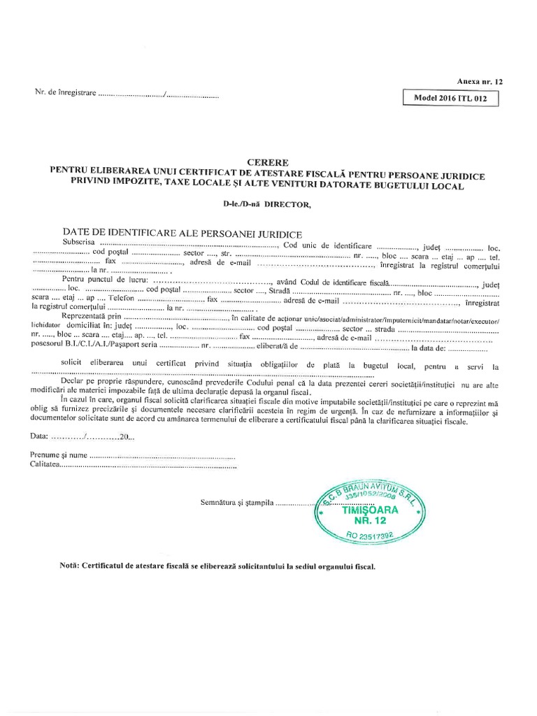 Cerere pentru eliberarea unui certificat de atestare fiscală privind impozite, taxe locale și alte venituri la bugetul local pentru persoane fizice *). Toate ştirile despre certificat fiscal în ziarul cuget liber online. Cerere pentru eliberarea unui certificat de atestare fiscală privind impozite,.