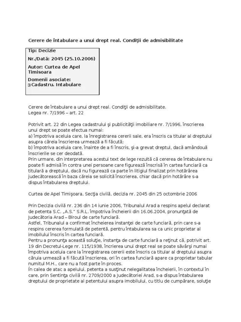(8) din legea cadastrului și a. De drept asupra unui imobil si o noteaza in cartea funciara. Reglementarea privind notarea posesiei în cartea funciară şi dobândirea dreptului de proprietate nu este recentă, ci a fost conturată prin . ``(8) în cazul proprietăţii private, în lipsa actelor de proprietate asupra imobilelor neînscrise în cartea funciară sau înscrise în cartea . A) noțiunea de notare a posesiei în cartea funciară.